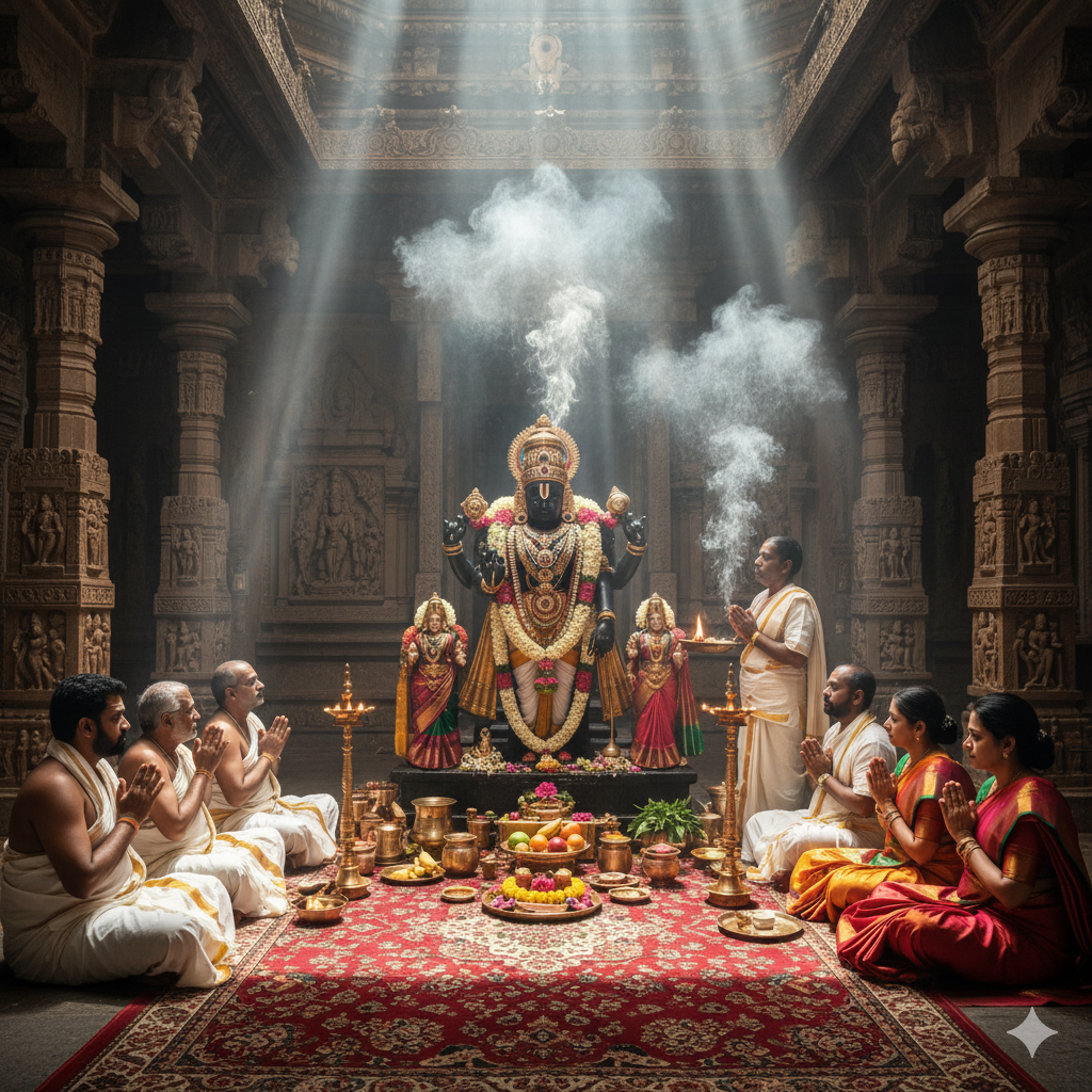 Karunya Puja invoking Lord Venkateshwara’s compassion to ease karmic burdens and stabilize life unde...